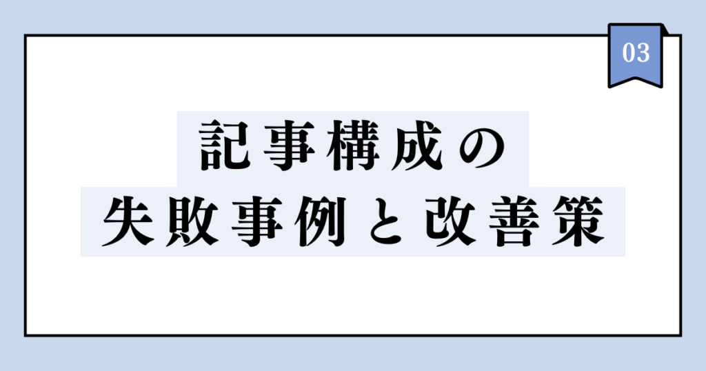 記事構成を作成しても、初心者が陥りがちな失敗事例があります。その改善策を知っていれば、より質の高い構成案を効率的に作れるようになります。